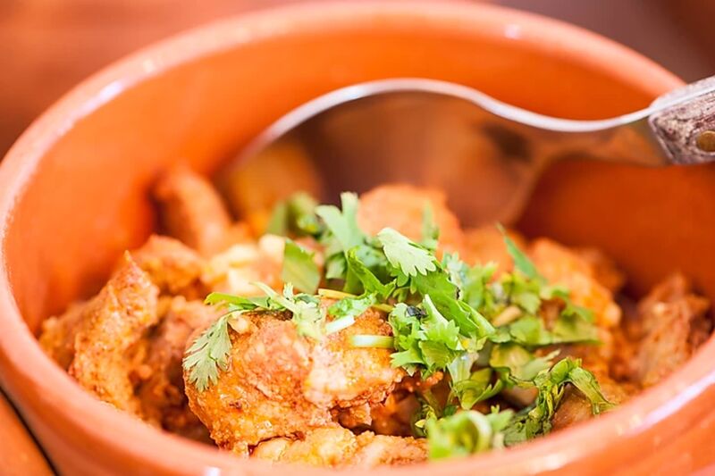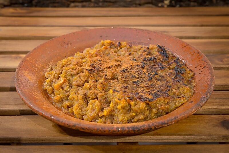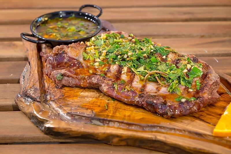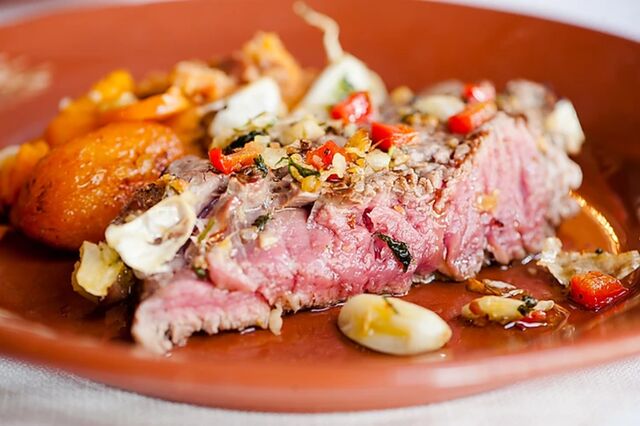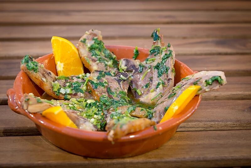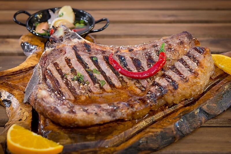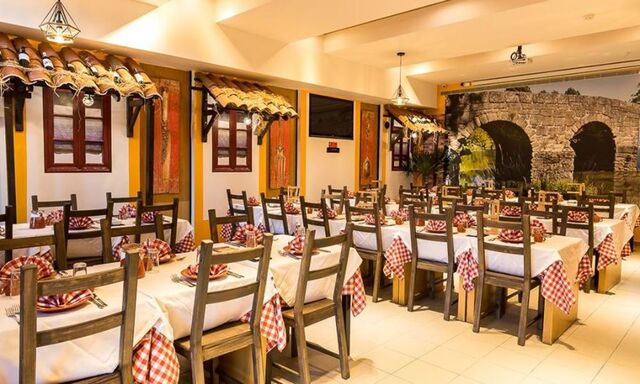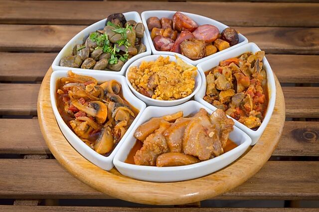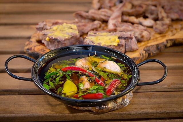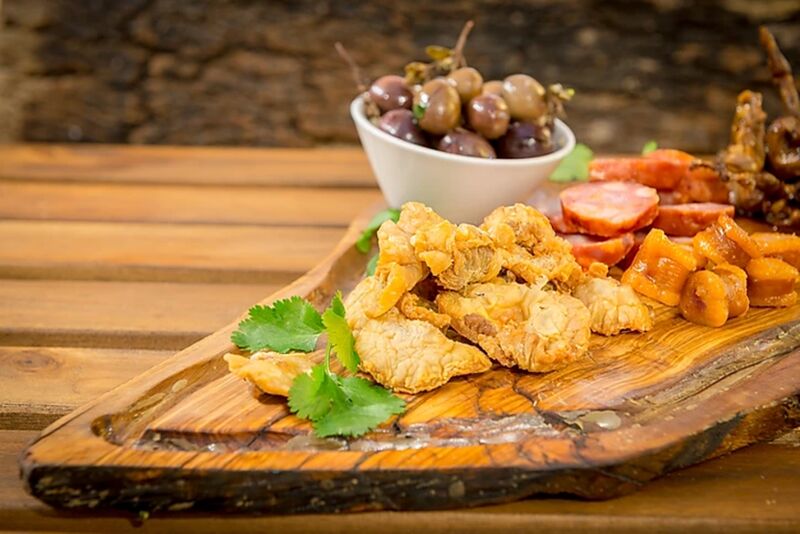 Após a degustação das entradas é servido à mesa um misto de carnes grelhadas, de excelente qualidade, com cinco variedades diferentes, composta por porco preto, novilho e borrego. Cinco diferentes acompanhamentos de excecional sabor completam o prato principal.